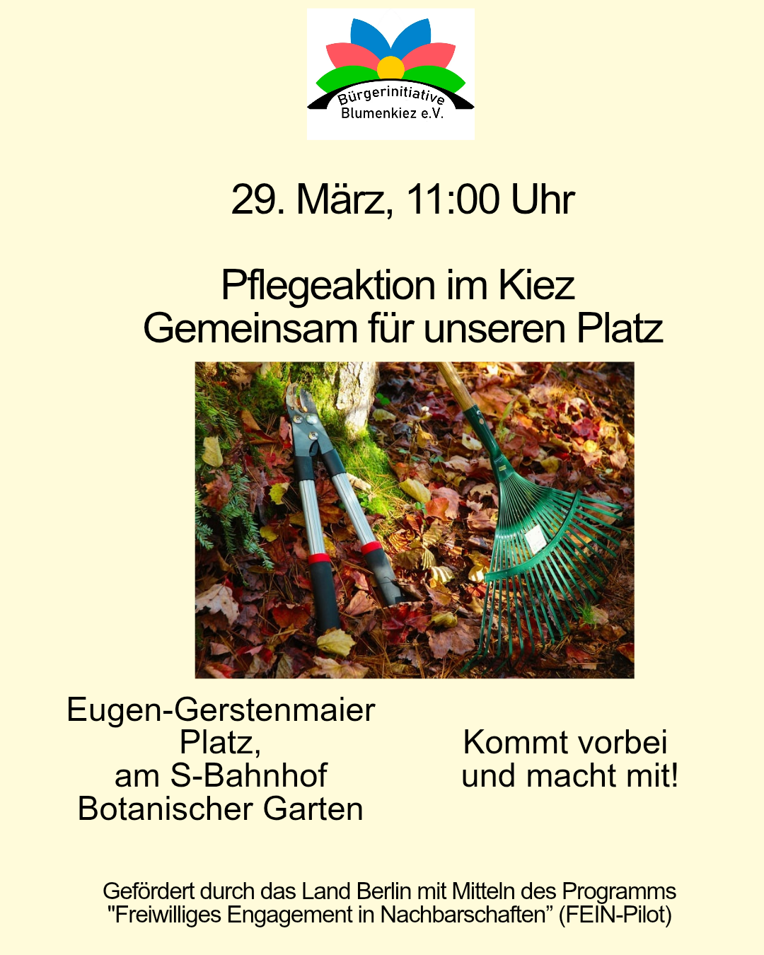Es ist wieder soweit – wegen Ostern – räumen Mitglieder der BI-Blumenkiez e.V: den Eugen-Gerstenmaier-Platz schon am 29.3.2026 ab 11 Uhr auf und pflegen die Beete des Platzes. Mitmacher/innen gerne gesehen.